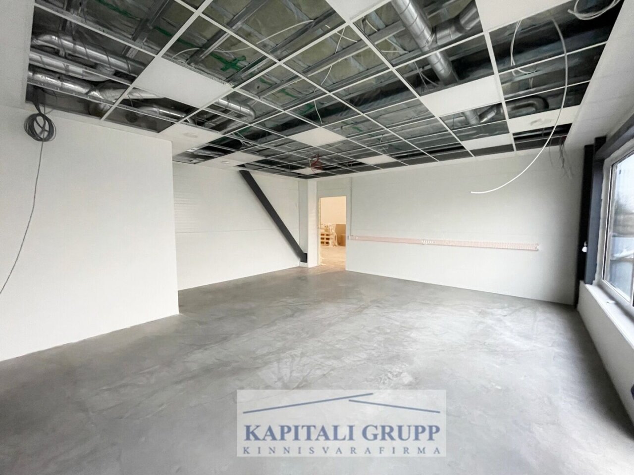 esimese korruse büroo suurus 35,8 m2, köögiboksi paigaldamise valmidus